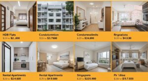 | 2BR Condo | Trung tâm | 4.000-7.000 SGD | Rộng rãi, sang trọng | Rất đắt, phù hợp gia đình |